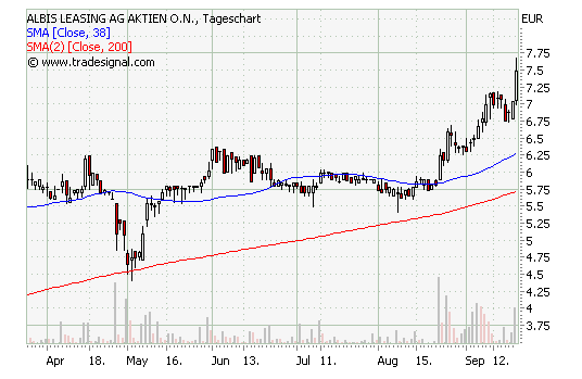 ALBIS Leasing bringe seine hoch profitable Tochtergesellschaft, das Finanzhaus Rothmann AG, an die Börse. Am 8. September habe der Vorstand mitgeteilt, dass das Emissionskonzept nun endlich beschlossen worden sei. Als dieses dann gestern in einer Mitteilung des Unternehmens konkretisiert worden sei, habe der Kurs kein Halten mehr gekannt und heute in der Spitze bei 7,90 Euro notiert. Die Analysten hätten in den letzten Monaten immer wieder daraufhin gewiesen, dass die Aktien der ALBIS eine Halteposition seien.
