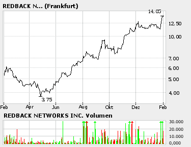 ... strong buy! Der Wert hat durch die Übernahme von Bellsouth durch AT&T Abwärstpotenzial verursacht, obwohl es Redback glänzend geht. Dicke, fette Aufträge sind eingefahren!