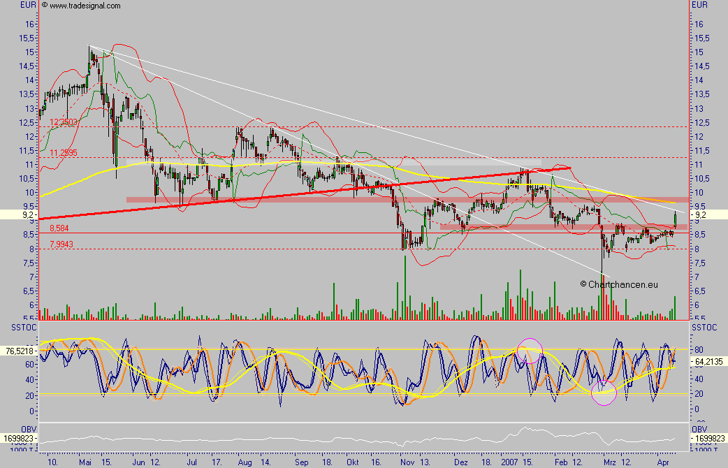 Bisher stiegen die Aktien um 3,94 Prozent und notieren aktuell bei 8,18 Euro. (06.03.2007/ac/n/nw)