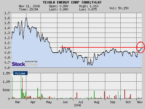 Die Experten von "Der Börsenspion" müssen auf Grund der freitäglichen Meldung ihr Kursziel für die Texola Energy-Aktie auf Jahressicht auf 3,20 Euro erhöhen. (06.11.2006/ac/a/a)