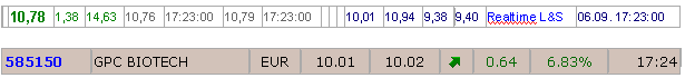 GPC BIOTECH EUR 10.01 10.02 0.64 6.83% 17:15