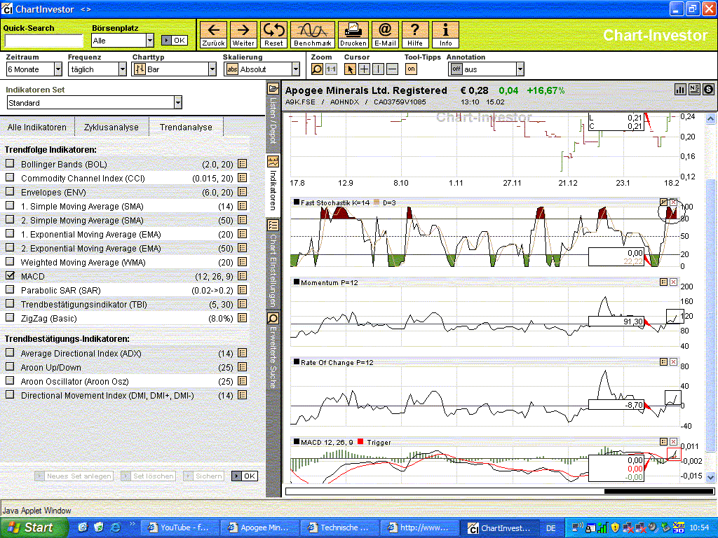Das Momentum (Bild 2) ist seit gestern positiv und steigend. Somit beschleunigt sich in Verbindung mit den Trendfolgeindikatoren der Aufwärtstrend rasant: