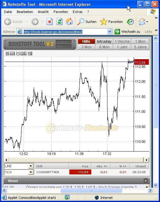 109,83 $ erreichen kann. Erst ein Rückfall unter die 109,83 $ auf Basis wenigstens des Stundenschlusskurses führt kurzfristig zu einem Verkaufssignal