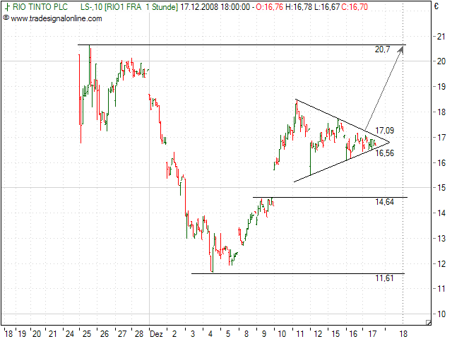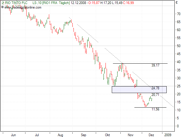 Bereits am 15.Oktober hatte Rio Tinto vor den schlechten Bedingungen gewarnt, die sich seit dem noch einmal verschlimmert hätten. Die Dividende für 2008 soll dagegen auf dem Niveau von 2007 von 1,36 US-Dollar gehalten werden.