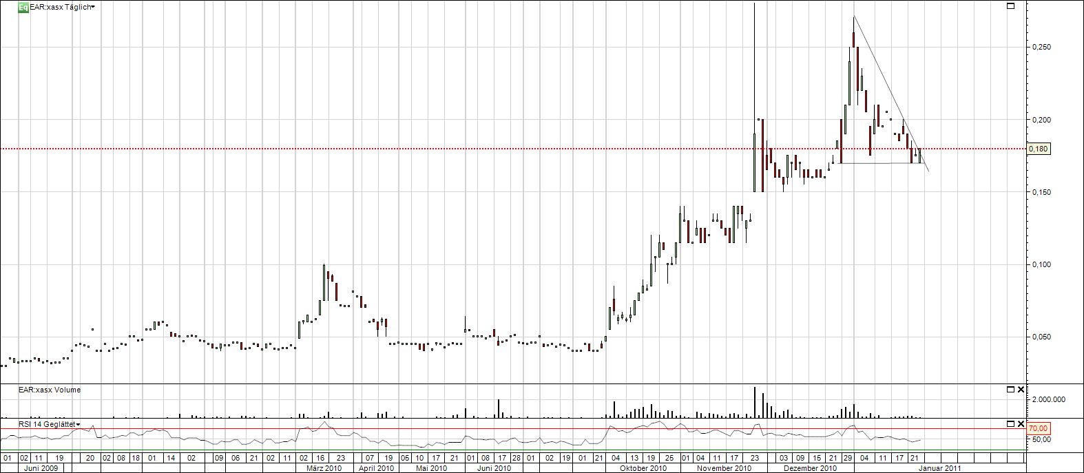 Vor der nächsten KE sollten jetzt sehr bald die restlichen Bohrresultate kommen, das restliche Cash müsste so langsam aufgebraucht sein. Vielleicht wird es ähnlich gut wie bei HOR, nur annähernd würde ja schon reichen.. Bei einer MK von lächerlichen 12 Mio $, 8,75 Mio € bleibt sehr viel Fantasie nach oben.