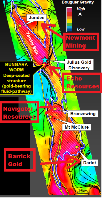 - The Yandal Project covers a premier position in the Yandal Belt in the northern part of the Eastern Goldfields Province, Australia's largest gold producing region. Over 13Moz of gold have been delineated in the Yandal Belt in a number of deposits since 1987. The largest gold deposits include Jundee (5.4Moz gold), Bronzewing (2.3Moz gold), Darlot (2.9Moz gold) and Thunderbox (2.0Moz gold).
