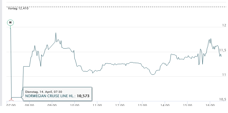 bei sämtlichen Unternehmen aus der Touristik Branche...auch NCL aktuell wieder bei 11 Euro. Royal C., Carnival, Tui usw...alle deutlich im Tagesplus heute.