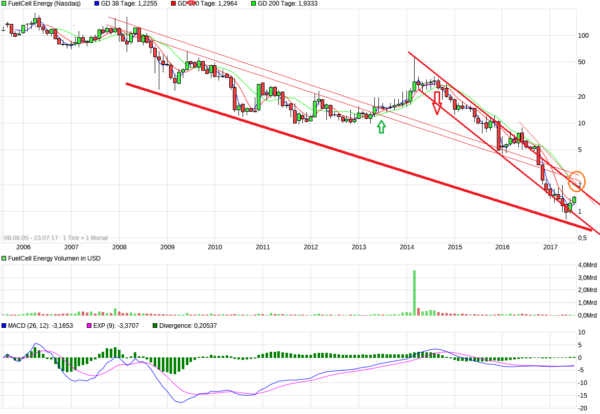es ist mal wieder soweit! der kurs klebt an der oberen begrenzung des abwärtstrendes. ein sprung heute oder morgen über 1,20$ oder besser 1,40$ könnte zu einem kurzfristigen boden führen. noch ist es nicht soweit und selbst dann hat der fcell kurs in der vergangenheit ganz böse bullenfallen (für charttrader) fabriziert. also vorsicht im falle des falles. bin gespannt ob wir eine entsprechende news bekommen. eine stärkere kursbewegung steht jedenfalls an - natürlich kann es auch scharf nach süden kippen- dank der shorter.