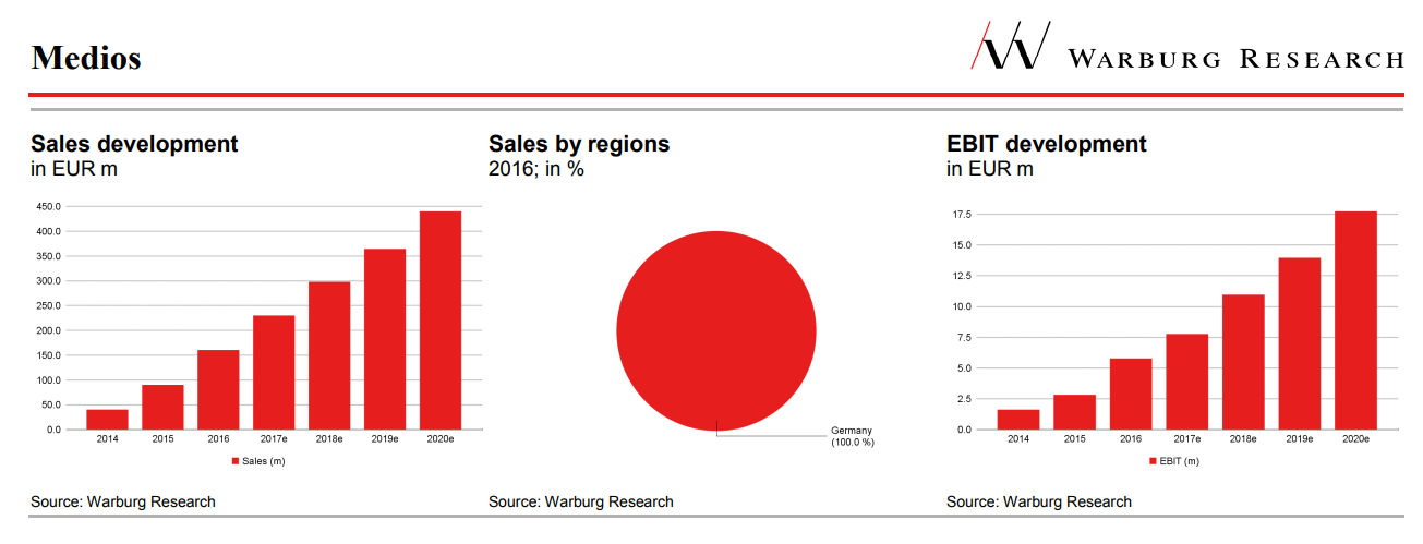 Warburg erhöht das Kursziel für Medios von 14 auf 16 Euro;