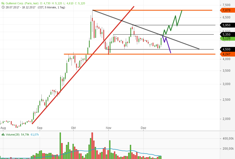 ist die Wahrscheinlichkeit groß, dass er jetzt den Aufwärtstrend ab 2 Euro vor gut 2 Monaten trifft,