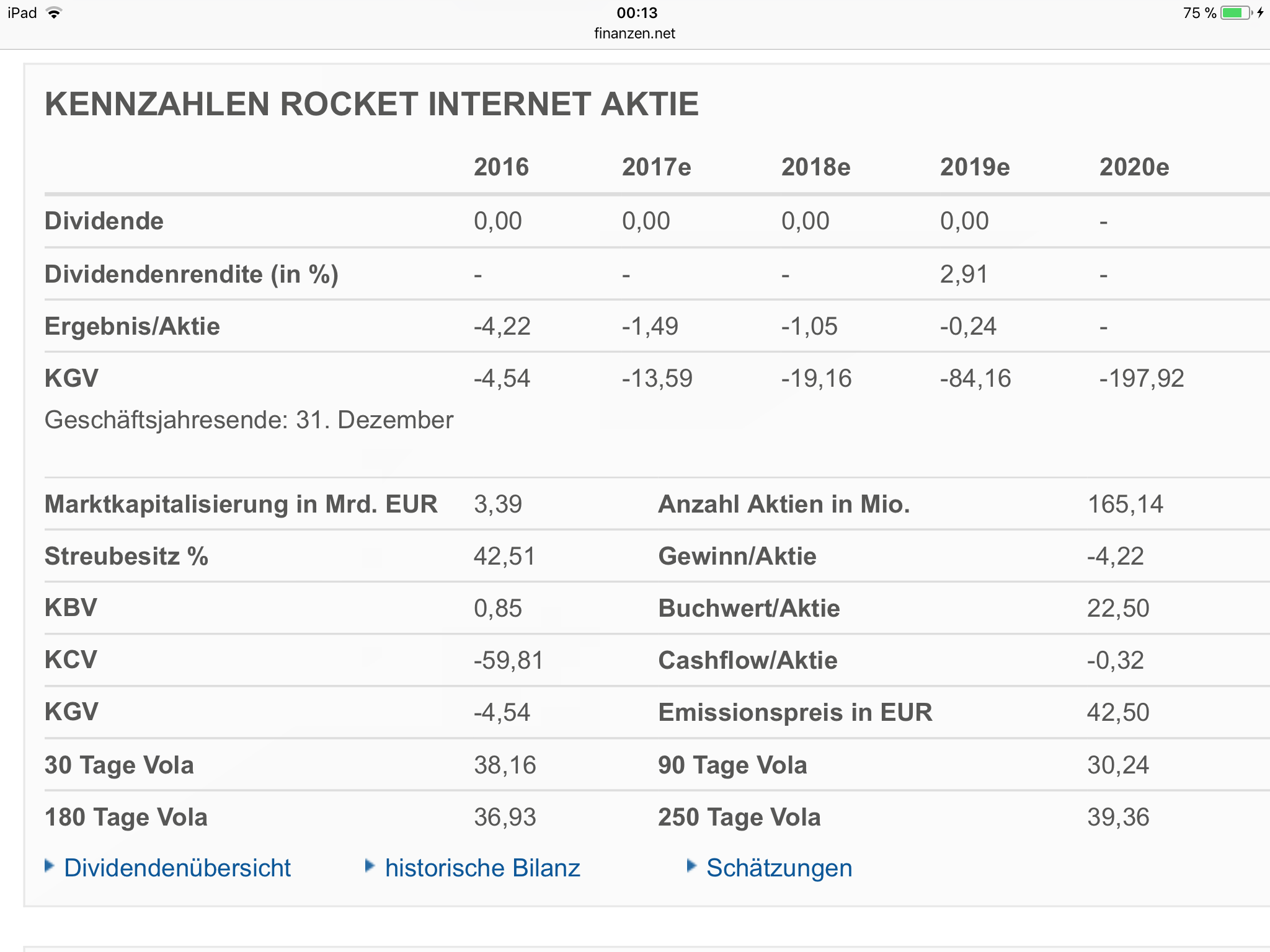 Kennzahlen Rocket Internet