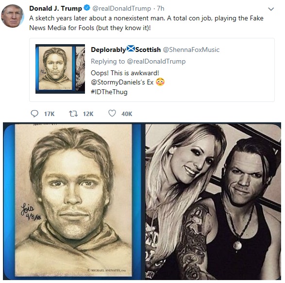 Allerdings wieso wieder nur Halbgeschichten, ORF? Warum enthält die "brisante" Berichterstattung auch nicht den Grund der "Attacke" seitens Trump, bzw. auf was er sich genau bezieht? Warum nicht erwähnen, dass die Phantomzeichnung eine verblüffende Änlichkeit mit dem Ex der Pornodarstellerin hat.