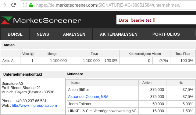sollten inzwischen­ durch verantwort­lich Handelnde(­n) der signature AG Aktien der