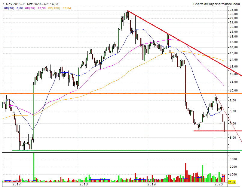 Ich würde allerdings allgemein an den Märkten und im speziellen bei interessanten Aktien in den nächsten 1-2 Wochen 8-10% unter den jetzigen Kursen Abstauberlimits liegen. Das wäre im Dax beispielsweise eine 24-25% Korrektur vom Hoch, also die Grenze zum Bärenmarkt. Zufälligerweise im Dax auch das Tief vom Dezember 2018 bei etwa 10300 Punkten. Trotz aller Panik sollte diese Marke eigentlich halten. Und bei den US-Indizes könnte ich mir ähnliche Abschläge in den nächsten zwei Wochen noch vorstellen. Aber Corona wird wie jedes Virus auch vorüber gehen, also zumindest für die Wirtschaft.