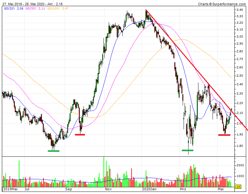 Also zwei Wochen hätten die Käufer doch noch warten können. Na gut, ich bin ja selber Schuld wenn ich nicht auf einem Berg Geld sitze, den ich auf Abruf direkt investiere­n kann. Immerhin habt ihr mich bei 1,90 € rechtzeiti­g geweckt zum Einstieg, danke!