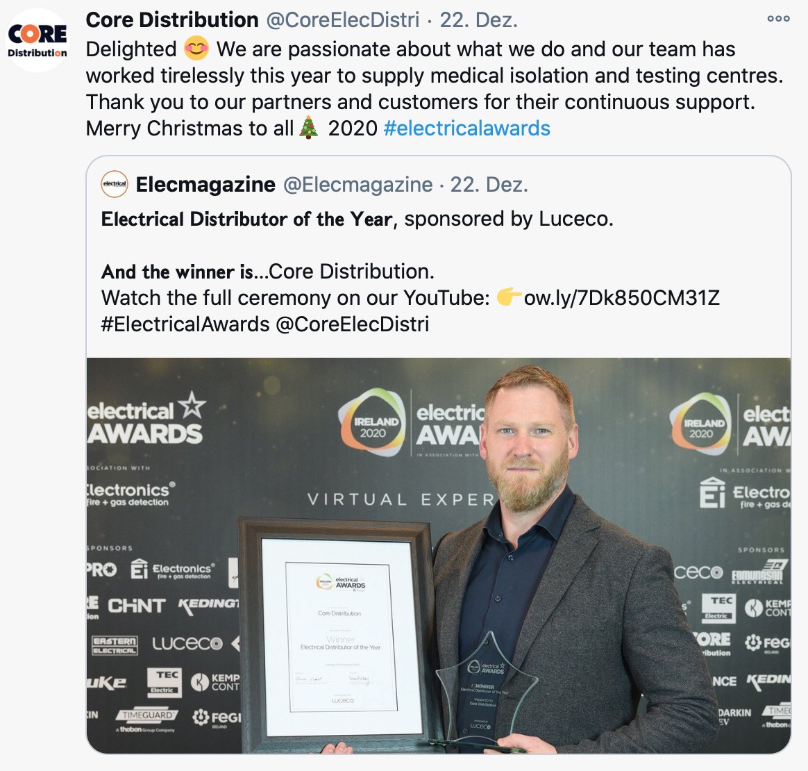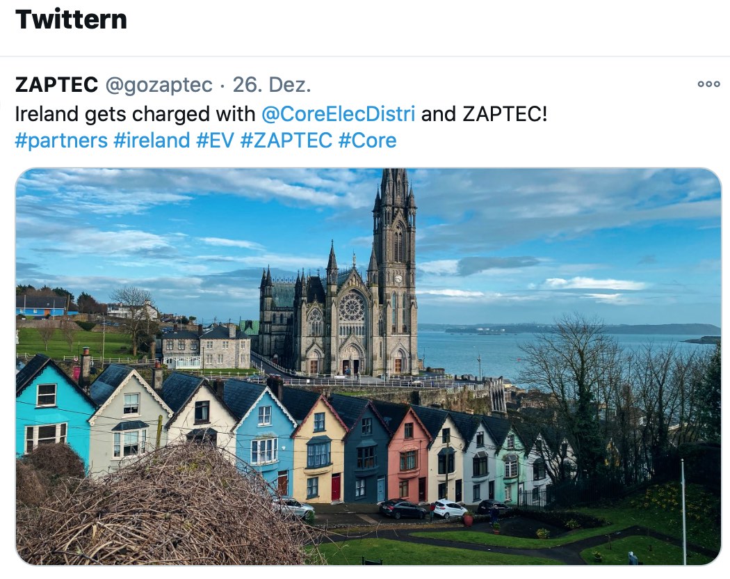 das sind Supernews... Zaptec wird vom Branchenführer Coreelectrical mit Auszeichnung/Awards in Irland vertrieben und vermarktet!