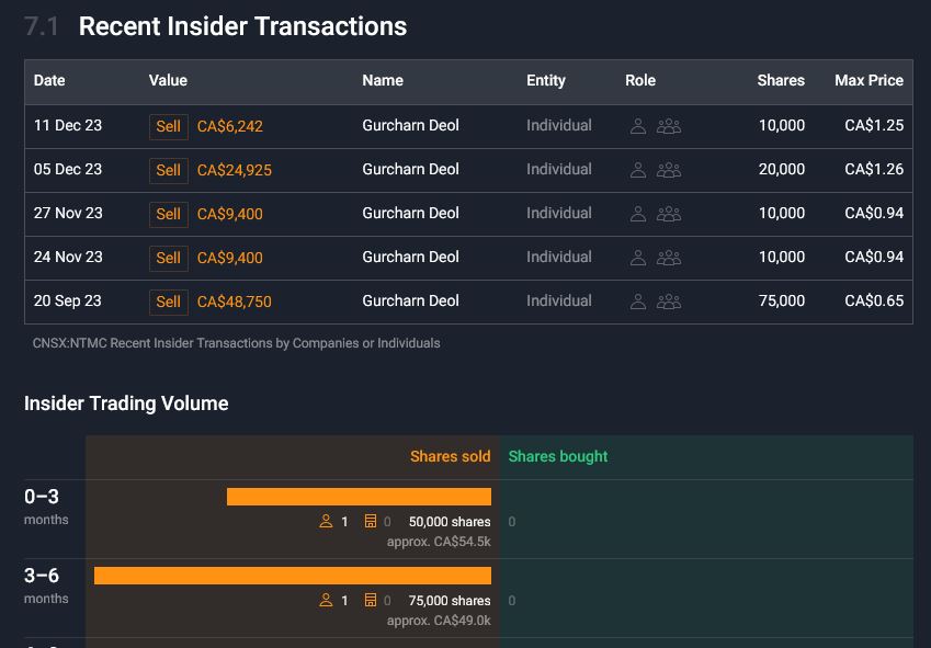 Wertpapiere sind an der Canadian Securities Exchange (CSE) unter dem Symbol NTMC und an der Frankfurter Wertpapierbörse unter dem Symbol V690 notiert und zum Handel zugelassen