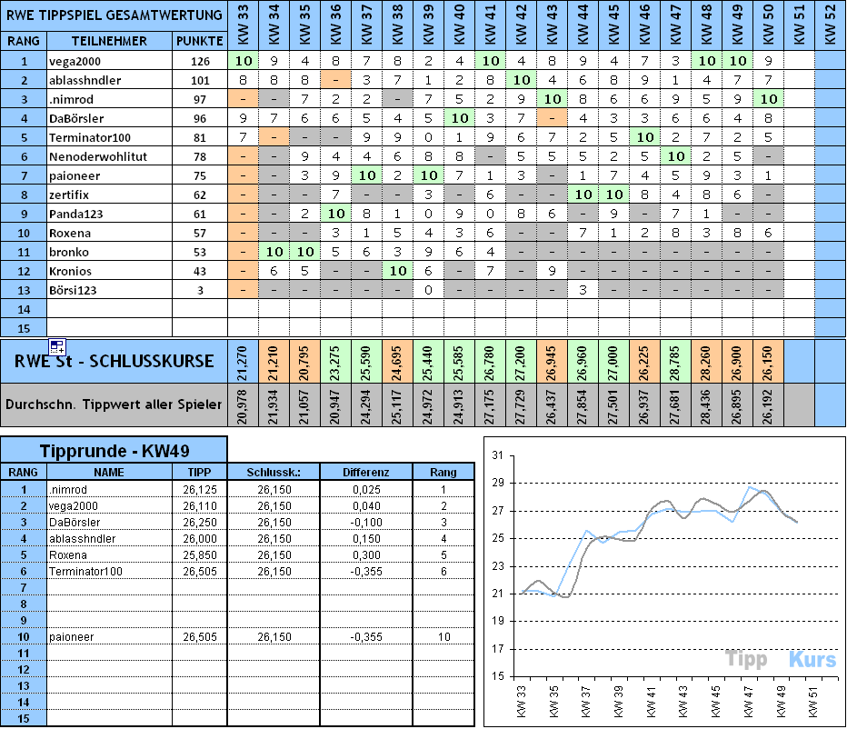 Folgend die Auswertung KW50: