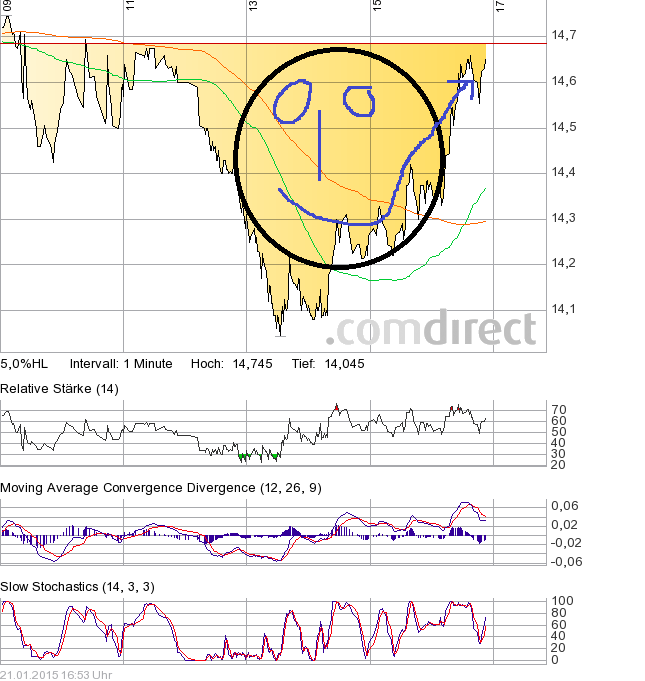 Beim Investor 2014 hat mein Portfolio einen der hinteren Plätze belegt. Mit exakt dem selben Portfolio lag ich beim Investor 2015 heute früh auf Platz 15. Nicht dass ich auf so etwas stolz wäre - ich finde es drollig. Die Lehre daraus: was heute schlecht läuft, kann morgen schon der Bringer sein. Oder hätte es jemand (außer mir) für möglich gehalten, dass zB. SGL (die ungekrönte Versagerkönigin des Jahres 2014) einmal fast 10% am Tag macht, ohne jegliche News?