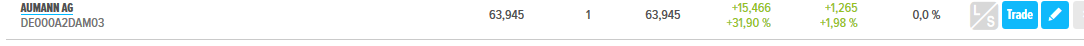 Aumann habe ich beim Börsengang auch beobachtet und sieht fundamental auch gut aus aber war mir einfach zu teuer und das schon bei Kursen von 54 Euro....das die Aktie jetzt sogar weiter gestiegen ist spricht für Ihre Fantasie aber erreicht natürlich so noch höhere Bewertungen sodass Sie für mich zur Zeit uninteressant ist....