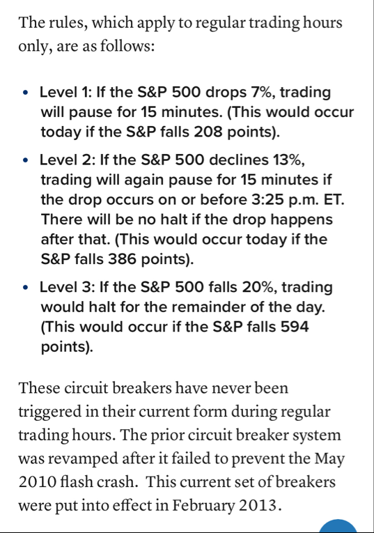 Bei -13% würde es wieder 15 Minuten Pause geben, bei -20% wäre der Handel für den Tag beendet.