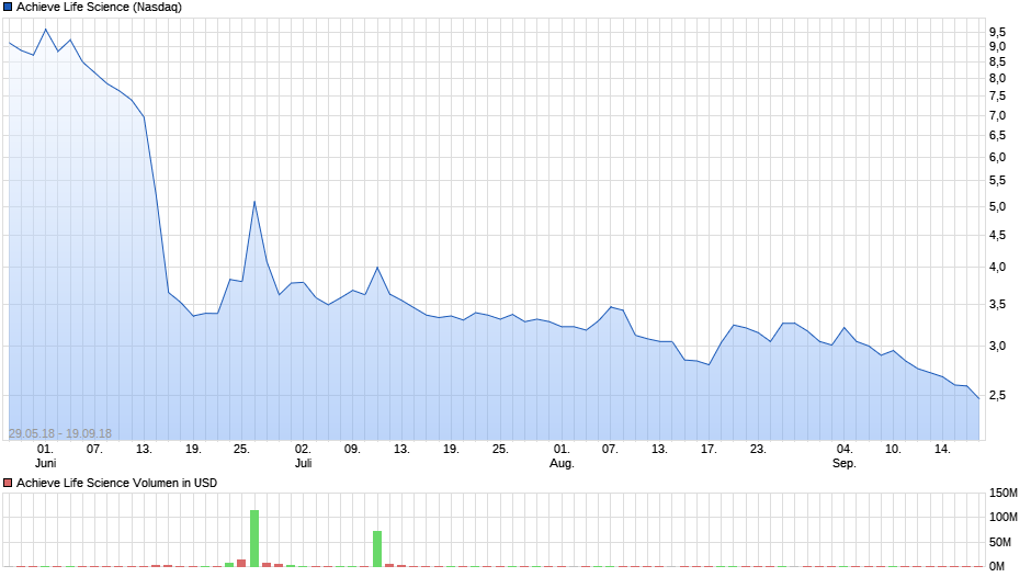 WKN: A2QAR3 / ISIN: US0044685008Achieve Life Sciences nach Reverse Split