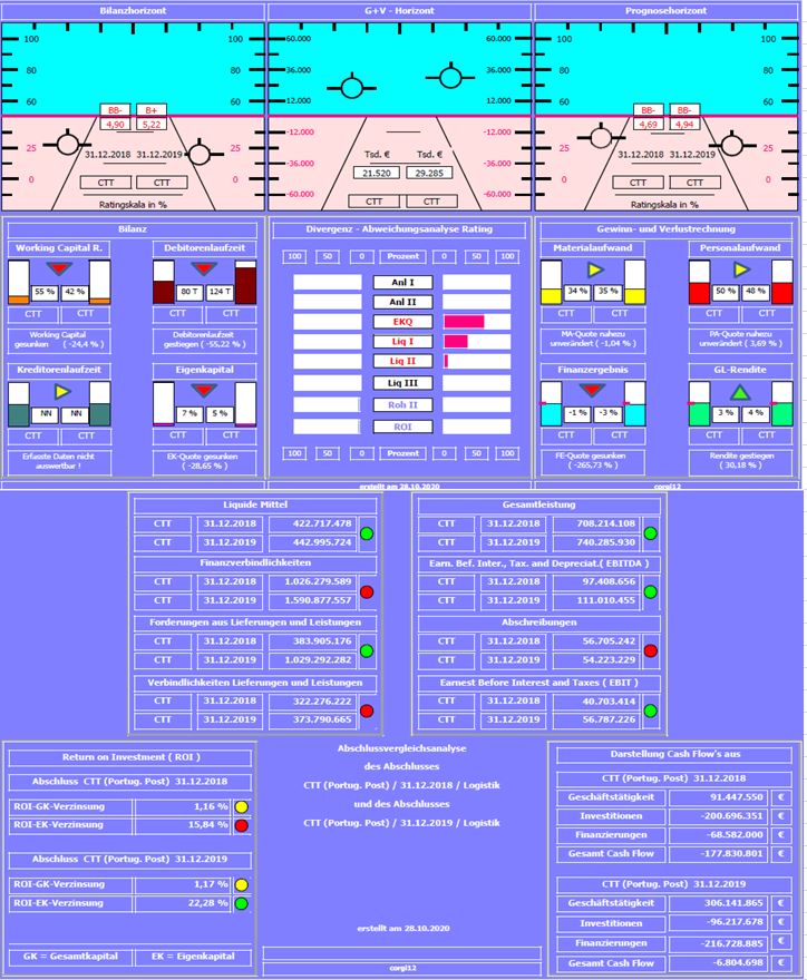 Bilanzrati­ngnote: Die Bilanzrati­ngnote hat sich von 4,69 auf 4,94 !!! verschlech­tert. Welche Faktoren (Kennzahle­n) dazu beigetrage­n haben, kann an der Divergenzd­arstellung­ abgelesen werden.