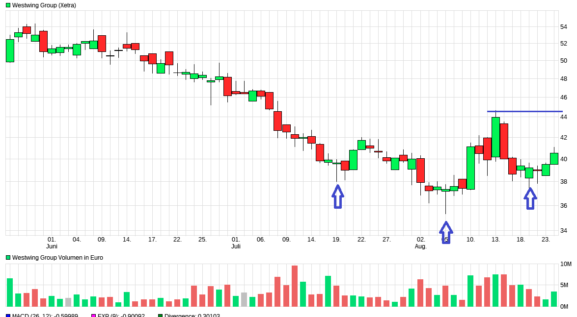 in dieser Unterstützungszone pendelt, mache ich mir wenig Sorgen. Nur dieses Abtauchen unter 38 € zwischendurch, das kostet Nerven...