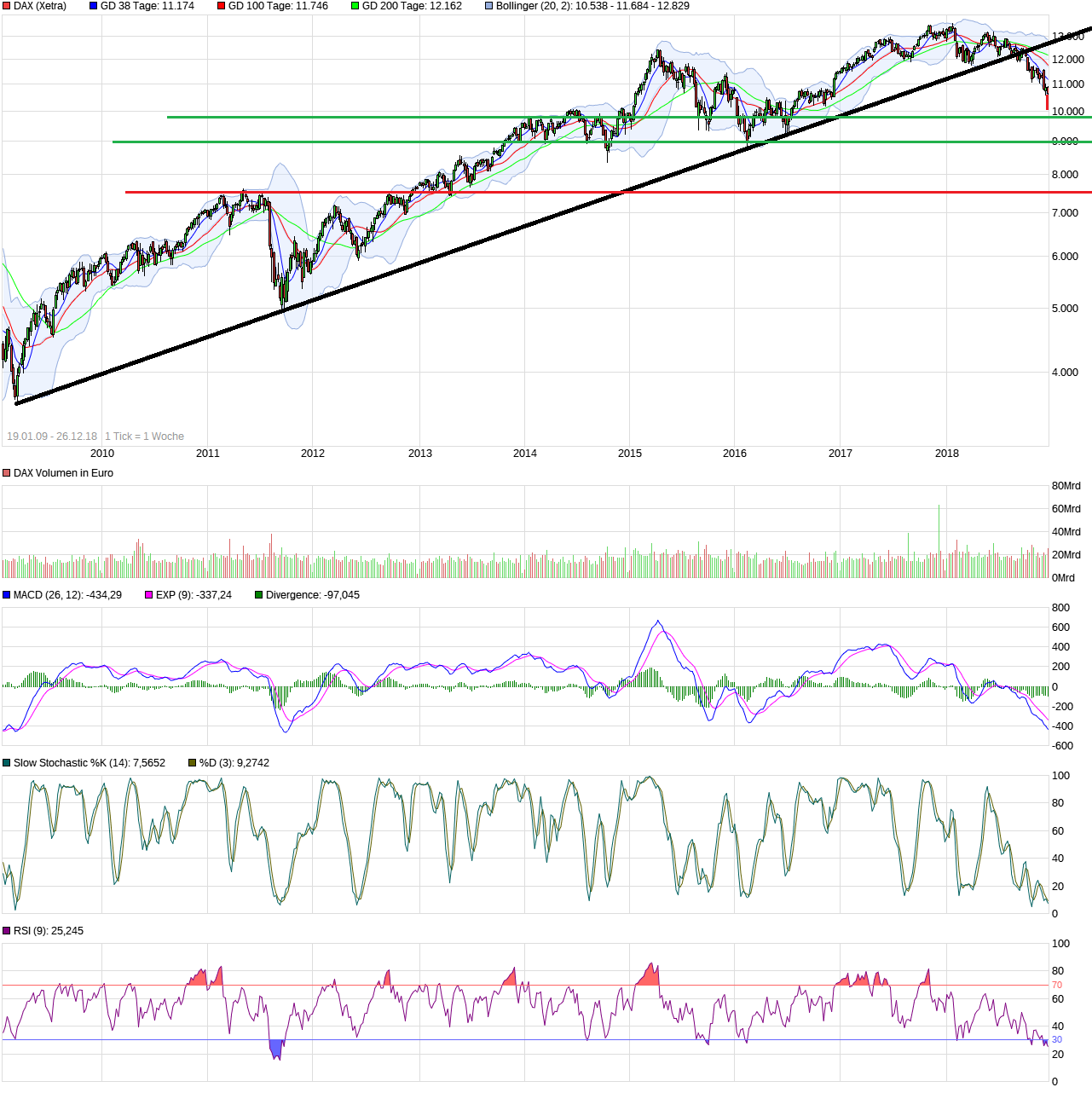 Demnach, wenn die nächste Unterstützung bei ca. 9800 nicht hält, muss es der Kreuzwiderstand bei ca. 9000 aufhalten. Darunter sähe es düster aus bis mind. 7500.