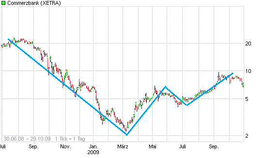 Die selbe Diskussion, die wir jetzt und hier führen, wurde ja bereits schon einmal geführt, nämlich im Jahr 2009. Erinnern wir uns, wie das damals gelaufen ist: der Kurs ist nach dem Lehman-Schock ähnlich wie heute eingebrochen (wenn auch nur auf 2,20 Euro) und ähnlich wie heute hat niemand mehr eine Erholung für möglich gehalten. Stattdessen waren Pleite, und Verstaatlichung die meistgenannten Vokabeln damals.