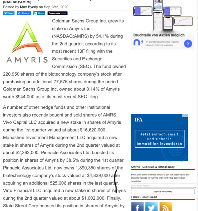 aber - der markt ist ja auch insgesamt schwierig - spannend wird es werden ob amyris nächste woche noch eine ausführliche Antwort auf den lawsuit gibt.... frist von 21 Tagen ist dann vorbei. wenn da selbstbewusst und klar kommuniziert wird, könnte das etwas ruhe geben - könnte.