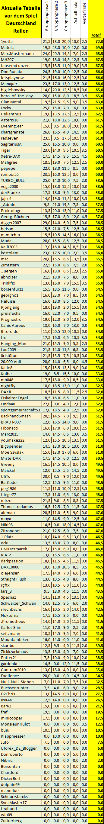 In der zwischenzeitlichen Tabelle nach dem Italienspiel, sind 67 User nicht dabei.