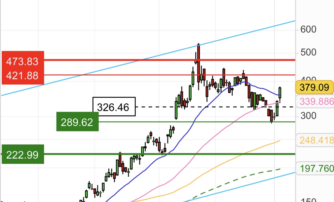 Laut Fibonacci Chart müssten die 315 Dollar halten für ein Rebound. Naturlich wenn der Bitcoin mit hochgeht. Na dann mal allen viel Erfolg !