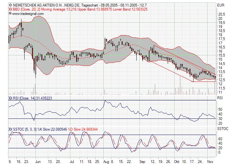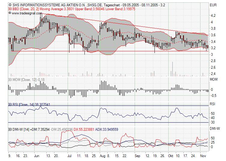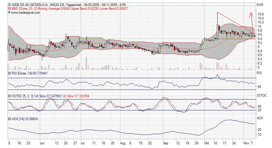 Hab mir Web.de mal angeschaut, gefällt mir der Chart. Nach unten wurde eine schöne Unterstützung gebildet. RSI zieht runter, könnte was kommen die nächsten Tage! Aber behalte die Unterstützung bei ca. 9,45 € im Auge. Die sollte nicht mehr berührt geschweige den unterschritten werden! Bollinger sehr eng, bald passiert in jedem Fall was...