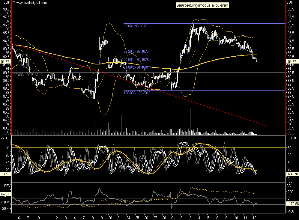 Verlassen des Aufwärtstrend, Ausbildung eines kleinen Abwärtstrend und sollte nun zumindest das Kreuz an der 113,50 nochmal anlaufen können.