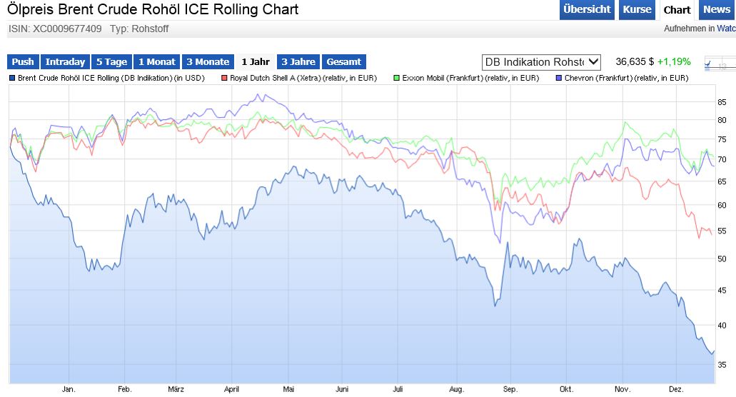 ...in BP investiert und habe mir auch einige Shell- Sharez in's Depot gelegt, da ich beide Firmen als "krisensicher" einstufe, klar trifft der Preisverfall auch die Oil- Majors, doch federt eben das integrierte Geschäftsmodell der doch heftigen Preisverfall ab.