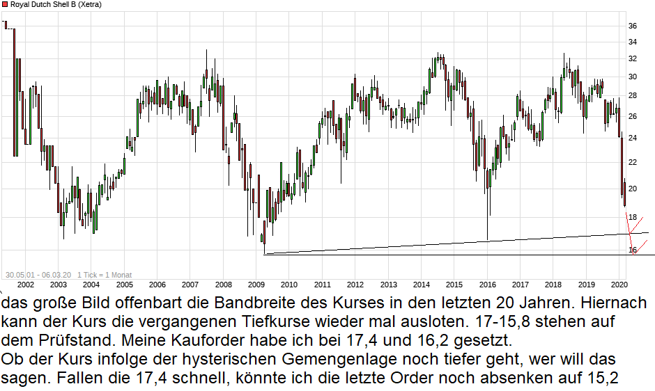 Sicher ist das eine tolle Nachkaufgelegenheit, aber ein Blick auf meine tiefroten Shell Aktien vermiest einen die Stimmung. Sollte das Virus sich weiter ausbreiten und danach sieht es ja aus, dürfte es noch weiter nach unten gehen. Zu viel Panik im Markt. Etwas nachkaufen werde ich aber auch.