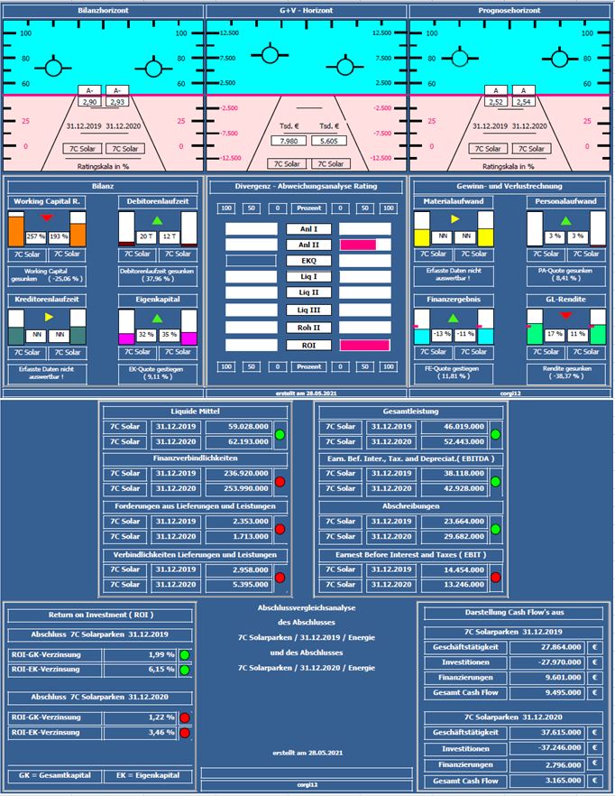 Um die Entwicklung aufzuzeigen, wurde der Jahresabschluss 2019 mit dem Jahresabschluss 2020 verglichen ( vor Corona und 10 Monate in Corona ). Häufiger wird angemerkt, warum Auswertungen mit alten Daten präsentiert werden. Bei den von mir erstellten Kurzanalysen handelt es sich um ein längerfristiges Projekt bei dem zunächst vorpandemische, danach dann inpandemische und zum Schluß nachpandemische Zeiträume dargestellt werden, um den Einfluß von Corona auf Unternehmen/Branchen zu dokumentieren.
