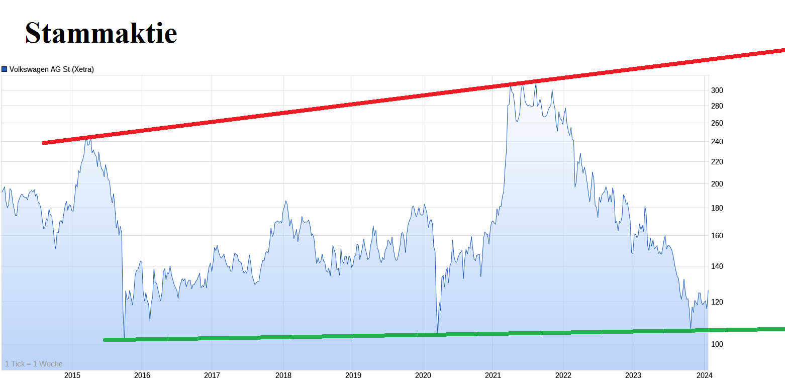 Auf die Super Performance der VW Aktie in den letzten Jahren.