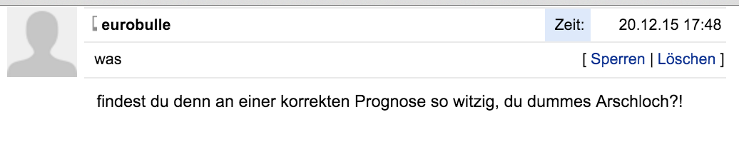 was für eine kunst bei dieser vola soetwas als analyse herauszuge­ben , ich frage mich wieviel der mit so einem geschäft monatlich so einsackt.