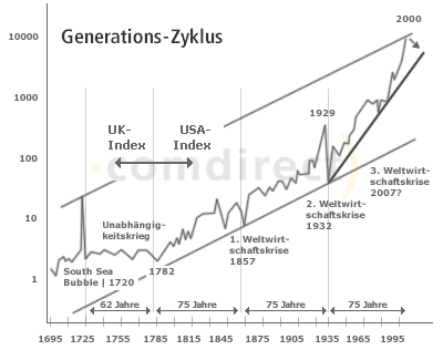 Dieser Zyklus ist von seiner Länge extrem lang und liegt dem amerikanischen Aktienmarkt zugrunde, dessen historische Tiefpunkte alle 75 Jahre auftraten.