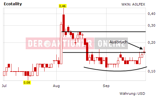 Zweifellos verfügt auch die Aktie von Ecotality über viel Potenzial. In Anbetracht der starken Kursschwankungen der letzten beiden Monate sollten aber nur Anleger in das Papier investieren, die stressresistent sind und eine spekulative Ausrichtung haben. DER AKTIONÄR bestätigt sein kurzfristiges Kursziel von 0,26 Dollar (0,18 Euro). Auf längere Sicht kann die Ecotality-Aktie auch wieder auf die Jahreshöchstkurse von 0,46 Dollar (0,31 Euro) steigen, die Anfang August kurz nach Zubilligung der knapp 100 Millionen Dollar staatlicher Fördergelder erreicht worden sind."