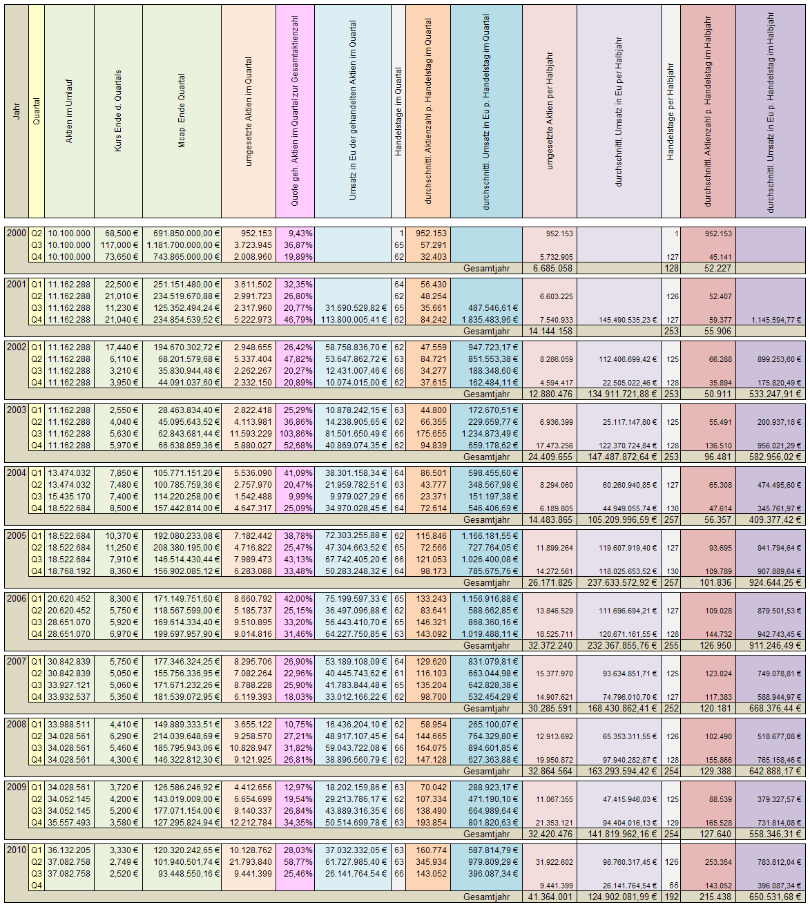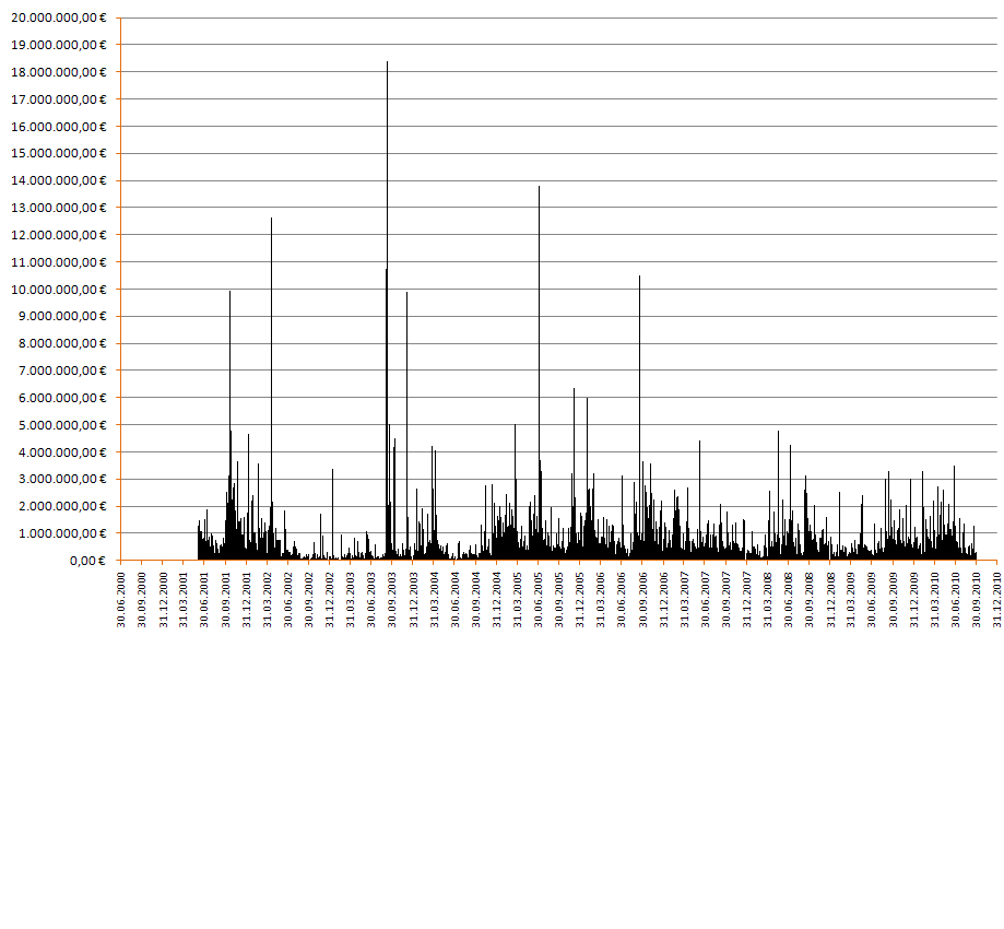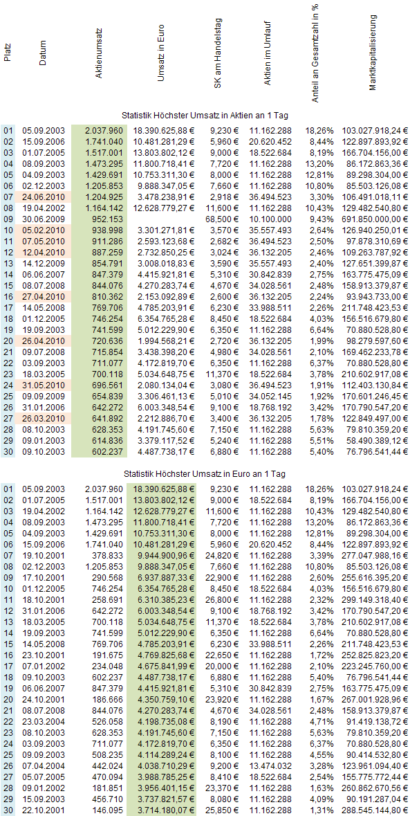genug Bildchen.. Zu der Umsatzstatistik in Sachen Tagesvolumen - da gibts keine Angaben von Beginn an (ca 1Jahr)) dazu bei Xetra zu finden..
