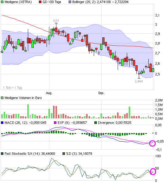 Ich hatte Medigene bei der Zeichnung bekommen, die Aktie am Höchstkurs behalten und weit unter der Zeichnungssumme verkauft. Seit letzter Woche suche ich nach einem spekulativen Investment um mein doch sehr konservatives Depot etwas zu beleben. In diesem Zusammenhang bin ich auf meiner Liste über Medigene gestolpert.