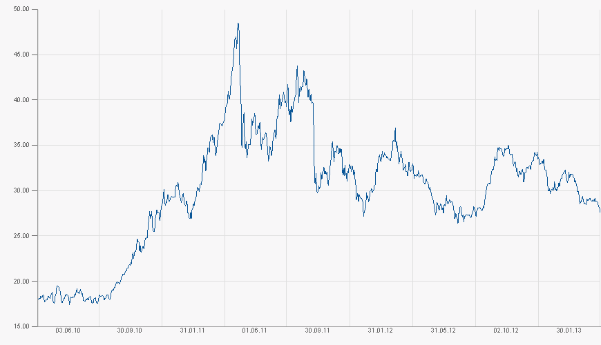 in euro gerechnet sind wir übrigens fast auf dem niveau, zu dem ich dutzend-kiloweise das zeug nachgekauft habe ( okt.10 ) - wenn ich jetzt von rendite spräche wär das sicherlich ein schlechter scherz :_))