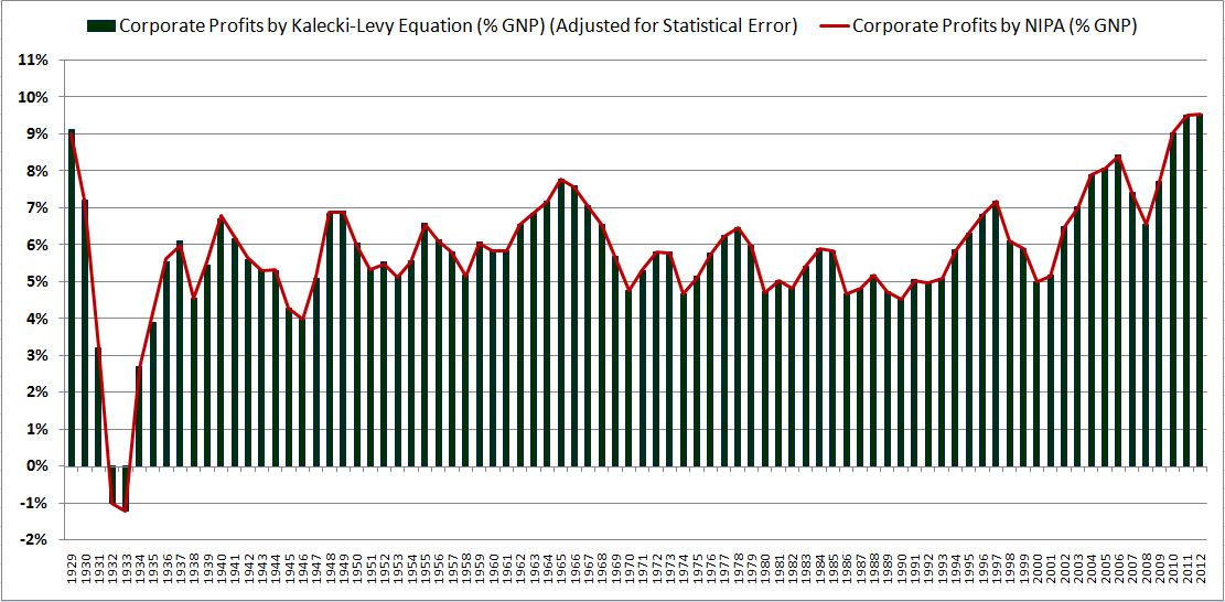 Die angebliche Chartkorrelation von Dow aktuell vs 1929 ist nonsense, schau auf die Metrik li und re. Kein nonsense ist jedoch, dass das Verhältnis corporate profits vs GNP zuletzt 29 auf diesem level gesehen wurde (s Chart unten)..
