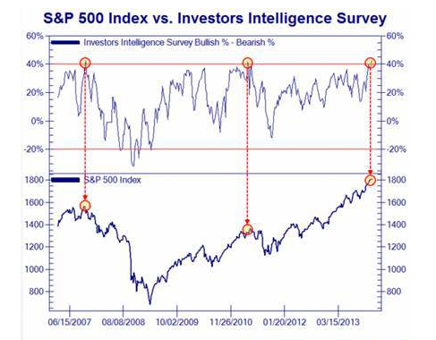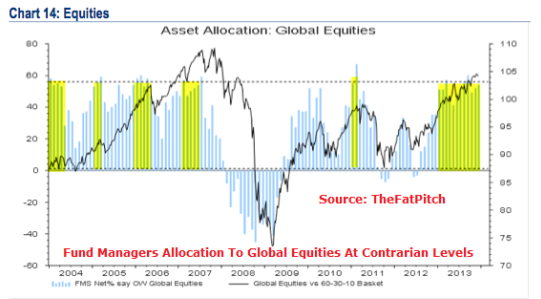 Fund- und Assetmanager sind bis zur Halskrause long investiert, während Dumb mittlerweile beachtliche Volumina vorhält, um Dips aufzukaufen (Tapering wird dabei erwartungsgemäss bullish übersetzt als 'der Patient wird aus der Reha entlassen'). Smart und Insiders tendieren zum Verkauf, Azler arbeiten am finetuning für strategisch short. ..