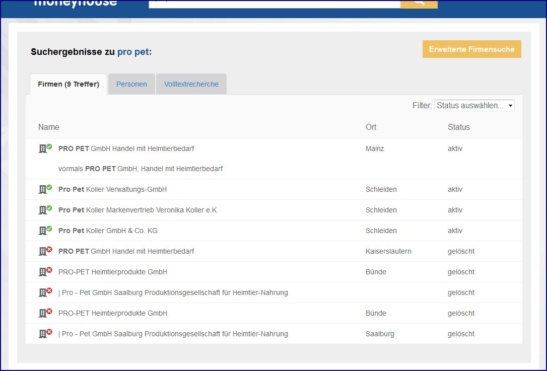 Source/s:www.moneyhouse.de/Pro-Pet-Koller-GmbH-Co-KG-Schleiden