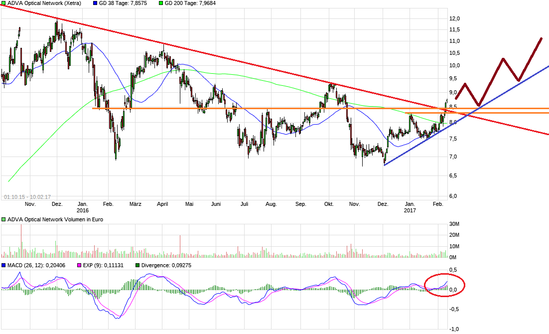 und auf zum nächsten Wiederstand der bei 9,30€ liegt. Die Unternehmenszahlen am 23.02. sollten entsprechend gut ausfallen, dann geht der Start erst richtig los. Wer heuer statt Wasser Wein trinken möchte sollte dabei bleiben und falls noch Pulver trochen ist auch wenn es schmerzt bei 9€ noch zu kaufen. (! Rücksetzer nutzen)