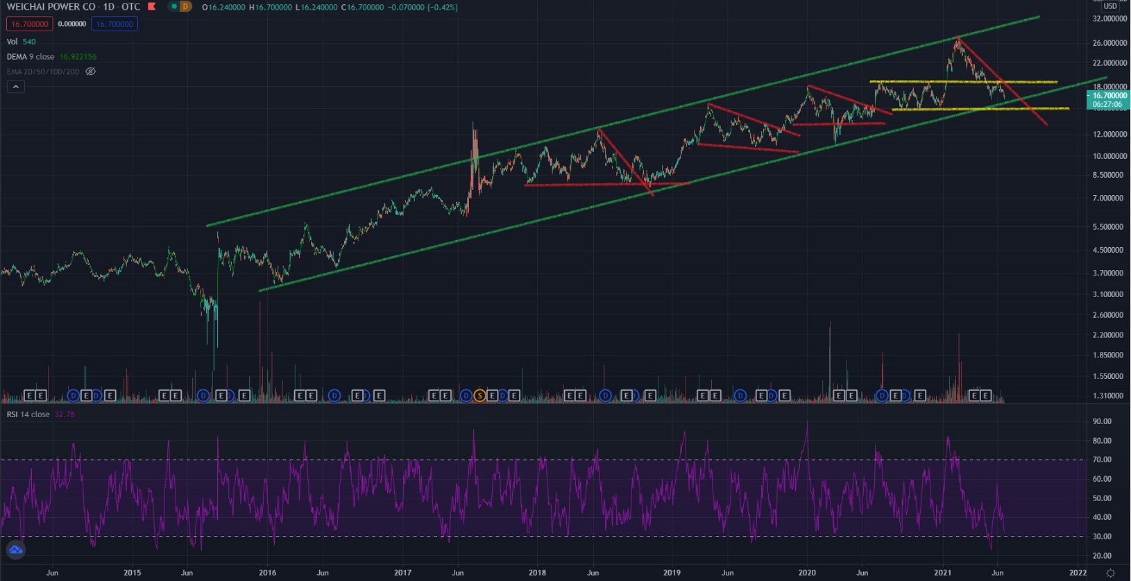 Nichts desto trotz, denke ich mir das ja nicht aus auch lt marketscreener steht die Unterstützung bei 14.5 hkd, also ca 1.60 Euro https://m.marketscreener.com/quote/stock/WEICHAI-POWER-CO-LTD-6170971/